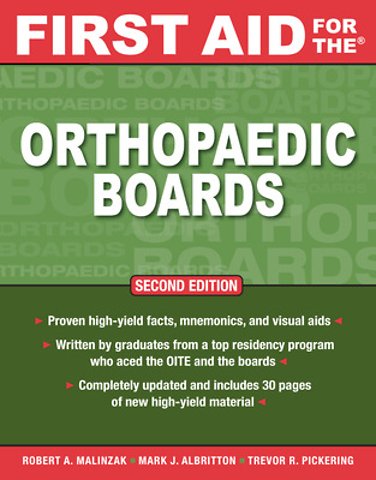 First Aid for the® Orthopaedic Boards is a concise, up-to-date review of frequently-tested, must-know topics for the in-service exam (OITE) and the orthopaedic boards. High-yield facts and numerous illustrations make this review perfect for early board preparation as well as last-minute review before the exam. Written by successful test-takers from Duke University's Orthopaedic Surgery Program Completely updated based on resident feedback to include the latest topics and techniques High-yield information, mnemonics, illustrations, and clinical images Tells you what to expect and how to prepare for exam day Great for early board preparation and last-minute review30 pages of all new material