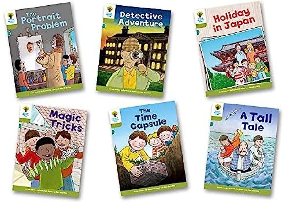 This Level 7 pack contains 6 books, one of each of: The Portrait Problem, The Time Capsule, Detective Adventure, A Tall Tale, Holiday in Japan, Magic Tricks.