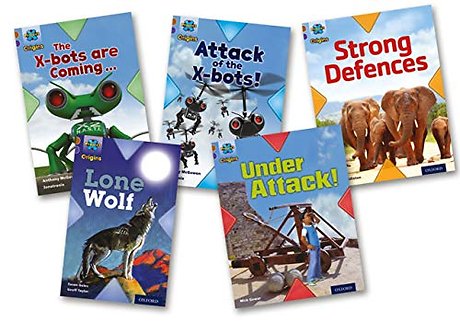 This pack contains 1 set of guided reading notes and 5 reading books, 1 of each of: The X-bots are Coming, Attack of the X-bots, Under Attack!, Lone Wolf, Strong Defences.
