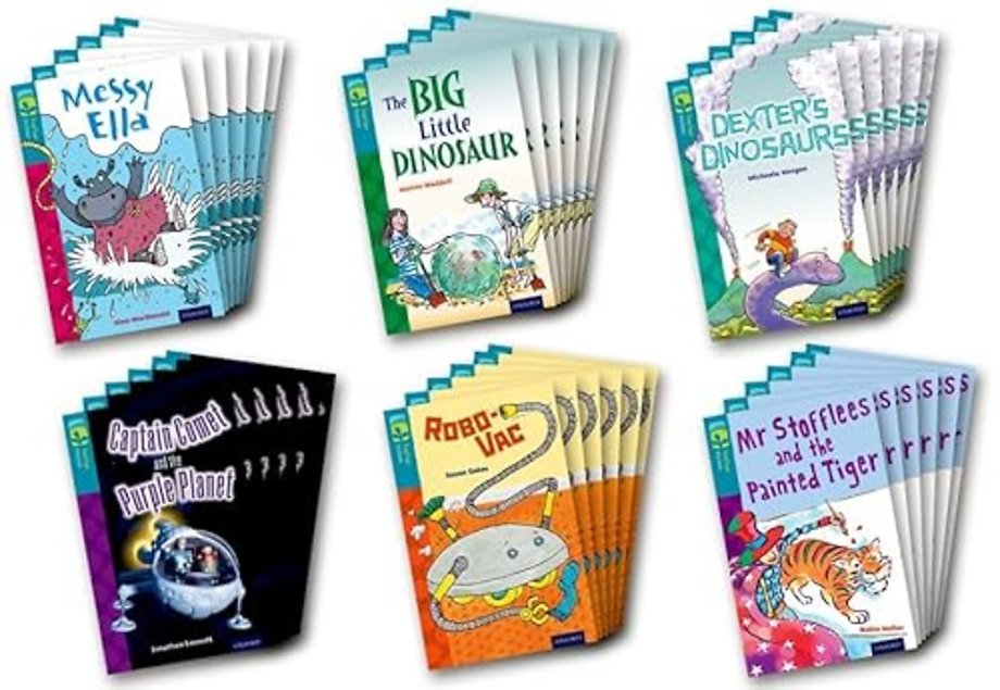 This pack contains 36 books, six of each of: Captain Comet and the Purple Planet, Messy Ella, Robo-Vac, The Big Little Dinosaur, Mr Stofflees and the Painted Tiger, Dexter's Dinosaurs.