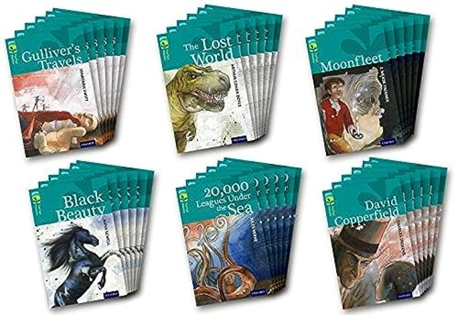 This pack contains 36 books, six of each of: 20,000 Leagues Under the Sea, Gulliver's Travels, The Lost World, Moonfleet, David Copperfield, Black Beauty.
