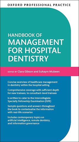 More than ever, there is an increased focus on healthcare management within the dental syllabus, and a greater emphasis at more junior levels. Oxford Professional Practice: Handbook of Management for Hospital Dentistry covers the managerial component of the dental curricula in a concise manner, whilst pertaining to the wider NHS setting.