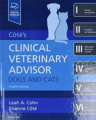 The indispensable resource for the busy small animal practitioner. Providing easy-to-use, cutting-edge information, Côté’s Clinical Veterinary Advisor: Dogs and Cats, 4th Edition is like six books in one — with concise coverage of diseases and disorders; procedures and techniques; differentials, mnemonics, and lists; laboratory tests; clinical algorithms; and a drug compendium. Completely updated from cover to cover, this edition includes over a dozen all-new chapters on new and important topics including hyperadrenocorticism (food-related), hypercalcemia (idiopathic feline), meningoencephalitis of unknown etiology, incidentally-detected heart murmurs, and more. It also includes free access to a fully searchable companion website containing an electronic version of the text, all of the book's images in color, bonus chapters and video content, a searchable drug compendium, 200 client education handouts in both English and Spanish, and 35 customizable client consent forms.UPDATED! Videos demonstrate important findings that static images cannot convey, such as characteristic lameness and ultrasound findingsUPDATED! Tech Tips cover more than 850 diseases and disorders that are especially relevant to the technician’s daily experience in the clinicUPDATED! 200 customizable printable client education handouts are included online and available in English or SpanishHighly referenced diseases and disorders presented in alphabetical order makes sought-out information easy to retrieveExtensive cross referencing throughout the text offers quick access to all pertinent informationHundreds of expert international contributing authors ensure the information is the most accurate and up-to-dateSIX-BOOKS-IN-ONE offers invaluable content, such as diseases and disorders; procedures and techniques; differential diagnosis; laboratory tests; clinical algorithms; and drug formularyPedagogical icons reflect content to alert readers to unique elements within each monographVibrant website with searchable content and extensive bonus material enhances information from the print bookNEW! Expert Consult website with fully searchable eBook allows quick identification of any topic and its related information in the six different sections of the bookNEW! Fully revised and updated content plus dozens of all-new chapters, including: Hyperadrenocorticism (food-related)Meningoencephalitis of unknown etiologyHypercalcemia (feline idiopathic)Hops toxicosisMovement disordersHeart murmur (incidental finding)PolyneuropathyUrethral occluder placementFecal transplantBronchoalveolar lavage (blind)NEW! Informed client consent handouts provide simple explanations of procedures and denote foreseeable risks in both English and Spanish)NEW! Additional color images throughout the eBook increase the effectiveness of clinical photographs to showcase ophthalmologic and dermatologic conditionsNEW! Includes procedures and techniques rated in practical "do-ability" from 1 diamond (any vet should be able to read and do), to 3 diamonds (understanding procedure will facilitate conversation with clients but best performed through referral)