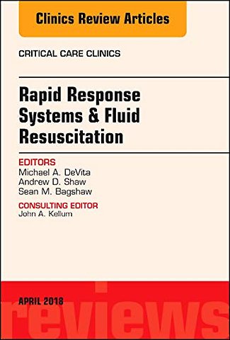 This issue of Critical Care Clinics focuses on Rapid Response Systems and Fluid Resuscitation, with topics including: RRS Now; Triggering Criteria; Surgery/Trauma RRT; Obstetric RRT; Difficult airway rapid response teams; Sepsis rapid response teams; Applied physiology of fluid resuscitation in critical illness; The microcirculation and endothelial function in critical illness; The role of fluid therapy in optimizing the high-risk surgery patient; Blood product administration in critical illness and perioperative settings; and the effect of fluid type and amount on kidney function in critical illness.