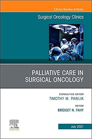 This issue of Surgical Oncology Clinics, guest edited by Dr. Bridget N. Fahy, is devoted to Palliative Care in Surgical Oncology. Dr. Fahy has assembled expert authors to review the following topics: Current guidelines for integration of palliative care in oncology; Management of malignant bowel obstruction; Management of peritoneal carcinomatosis & malignant ascites; Artificial nutrition in patients with advanced malignancy; Selecting patients for palliative procedures in oncology; Palliative radiotherapy: Indications and outcomes; Ethical considerations for caring for patients with advanced cancer; Evaluation and management of malignant biliary obstruction; Systemic anti-cancer treatments for advanced cancer patients: What a surgical oncologist needs to know; Role of palliative medicine training in surgical oncology; Navigating difficult conversations: Breaking bad news and exploring goals of care in surgical patients; Strategies for optimizing perioperative pain management for the cancer patient; and more!