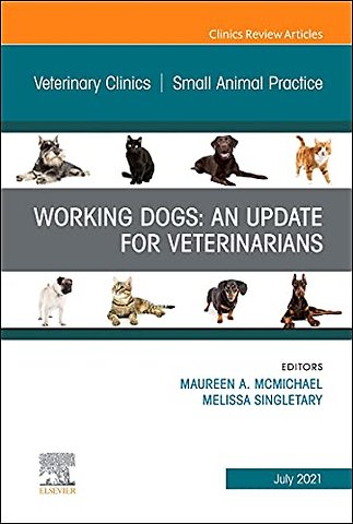 This issue of Veterinary Clinics: Small Animal Practice, guest edited by Drs. Maureen McMichael and Melissa Singletary, focuses on Working Dogs: An Update for Veterinarians. This issue is one of six issues published each year. Articles in this issue include, but are not limited to: Introduction to Working Dogs; Preventative Health Care and essential equipment needs; Anesthetic Considerations in Working Dogs; Dentistry for Working Dogs; Nutrition in Working Dogs; Current Rules and Regulations for Working Dogs; Canine Olfaction; Sports Medicine and Rehabilitation in Working Dogs; Herding and Sporting Dogs; Breeding Management and Production in Working Dogs; Development and Training for Working Dogs; Military Working Dogs; Operational Canines; and Assistance, Service, and Therapy Dogs.