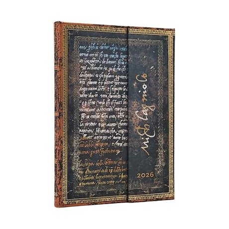 2026 Michelangelo, Handwriting (Embellished Manuscripts Collection) Midi 12-month Verso Hardcover Flexi Dayplanner 2026 (Wrap Closure)