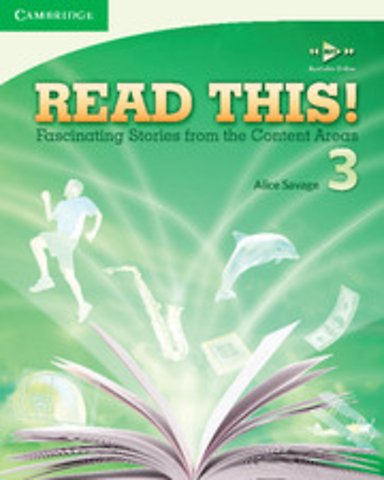 Read This!, Level 3 contains fifteen fascinating true stories relating to the fields of Tourism and Hospitality, Earth Science, Sports and Fitness, Political Science, and Automotive Technology. Students can read about a hotel in Finland made of ice, an area in the Pacific the size of Texas where trash accumulates, a man who swam the Amazon, and how trace evidence from cars can catch criminals. The readings are appropriate for intermediate to high intermediate-level students. After completing this book, students should be ready to tackle authentic academic reading.