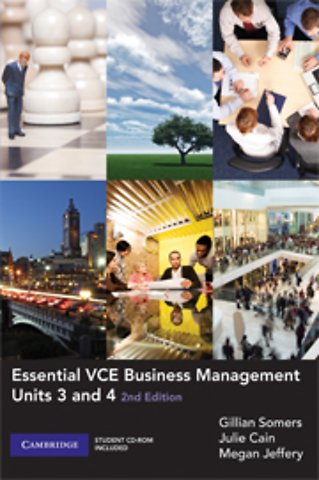 Essential VCE Business Management Units 3 and 4 2nd edition provides complete coverage of the new VCE study design implemented in 2010. With activities that support different learning styles, this full-colour text will develop the knowledge, skills and confidence needed for success at VCE level. This text includes: • Student friendly language • Theory made simple through visual representation • Key knowledge table that maps out what students need to know • Up-to-date statistics and case studies demonstrate how theory works in current business practices • Relevant ICT activities • Comprehensive end of chapter materials including chapter summaries that aid in the regular revision of material • Exam preparation questions in every chapter to improve student readiness for the final exam • Extensive range of teacher support materials A Student CD-ROM is included with this textbook. It offers an electronic version of the book plus crosswords to enhance student learning.