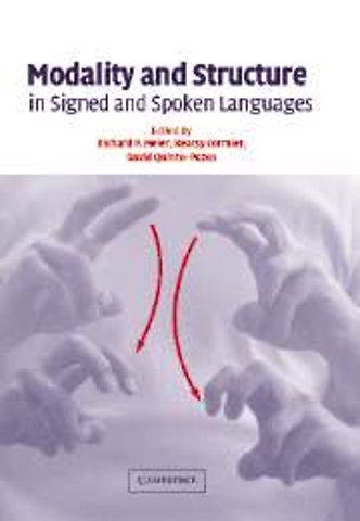 1. Why different, why the same? Explaining effects and non-effects of modality upon linguistic structure in sign and speech Richard P. Meier; Part I. Phonological Structure in Signed Languages: 2. Modality differences in sign language phonology and morphophonemics Diane Brentari; 3. Beads on a string? Representations of repetition in spoken and signed languages Rachel Channon; 4. Psycholinguistic investigations of phonological structure in American Sign Language David P. Corina and Ursula C. Hildebrandt; 5. Modality-dependent aspects of sign language production: evidence from slips of the hands and their repairs in German Sign Language Annette Hohenberger, Daniela Happ and Helen Leuninger; 6. The role of manually coded English in language development of deaf children Samuel J. Supalla and Cecile McKee; Part II. Gesture and Iconicity in Sign and Speech: 7. A modality-free notion of gesture and how it can help us with the morpheme vs. gesture question in sign language linguistics (or at least give us some criteria to work with) Arika Okrent; 8. Gesture as the substrate in the process of ASL grammaticization Terry Janzen and Barbara Shaffer; 9. A cross-linguistic examination of the lexicons of four signed languages Anne-Marie Currie, Richard P. Meier and Keith Walters; Part III. Syntax in Sign: Few or No Effects of Modality: 10. Where are all the modality effects? Diane Lillo-Martin; 11. Applying morphosyntactic and phonological readjustment rules in natural language negation Roland Pfau; 12. Nominal expressions in Hong Kong Sign Language: does modality make a difference? Gladys Tang and Felix Sze; Part IV. Using Space and Describing Space: 13. Pronominal reference in signed and spoken language: are grammatical categories modality-dependent? Susan Lloyd McBurney; 14. Is verb agreement the same cross-modally? Christian Rathmann and Gaurav Mathur; 15. The effects of modality on spatial language: how signers and speakers talk about space Karen Emmorey; 16. The effects of modality on BSL development in an exceptional learner Gary Morgan, Neil Smith, Ianthi Tsimpli and Bencie Woll; 17. Deictic points in the visual/gestural and tactile/gestural modalities David Quinto-Pozos.