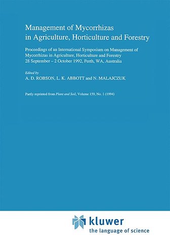 Preface. The mycorrhizal association -- just one of many nutrient acquiring specializations in natural ecosystems; J.S. Pate. The contributions of mycorrhizal fungi to the determination of plant community structure; R. Francis, D.J. Read. An economic approach to evaluate the role of mycorrhizas in managed ecosystems; M. Miller, T. McGonigle, H. Addy. Consideration of the taxonomy and biodiversity of Australian ectomycorrhizal fungi; M.A. Castellano, N.L. Bougher. Levels of diversity in endomycorrhizal fungi (Glomales, Zygomycetes) and their role in defining taxonomic and non-taxonomic groups; J.B. Morton, S.P. Bentivenga. The ecology of ectomycorrhiza formation and functioning; G.D. Bowen. An ecological view of the formation of VA mycorrhizas; L.K. Abbott, C. Gazey. Comparative structure of vesicular-arbuscular mycorrhizas and ectomycorrhizas; R.L. Peterson, P. Bonfante. Nutrient uptake in mycorrhizal symbiosis; H. Marschner, B. Dell. Nutrient transport in mycorrhizas: structure, physiology and consequences for efficiency of the symbiosis; S.E. Smith, V. Gianinazzi-Pearson, R. Koide, J.W.G. Cairney. Possible role of soil microorganisms in aggregation in soils; J.M. Tisdall. Interactions between mycorrhizal fungi and other soil organisms; A.H. Fitter, J. Garbaye. The functioning of ectomycorrhizal fungi in the field: linkages in space and time; M.P. Amaranthus, D.A. Perry. Research approaches to study the functioning of vesicular-arbuscular mycorrhizas in the field; I. Jakobsen. The screening and selection of inoculant arbuscular-mycorrhizal and ectomycorrhizal fungi; J.C. Dodd, B.D. Thomson. Genetics of ectomycorrhizal fungi: progress and prospects; F. Martin, I.C. Tommerup, D. Tagu. Genetic manipulation in vesicular-arbuscular mycorrhizal fungi; Y. Piché, L. Simon, A. Séguin. Host genotype and the formation and function of VA mycorrhizae; J.H. Graham, D.M. Eissenstat. What is the potential for management of vesicular-arbuscular mycorrhizae in horticulture? D.C.N. Chang. What is the potential for management of mycorrhizas in agriculture? J.P. Thompson. The potential for management of ectomycorrhiza in forestry; T.S. Grove, N. Malajczuk. Management of mycorrhizas in revegetation; D.A. Jasper. Issues concerning the production and use of inocula of ectomycorrhizal fungi in increasing the economic productivity of plantations; C. Kuek. Production of inoculum and inoculation with arbuscular mycorrhizal fungi; D.M. Sylvia, A.G. Jarstfer.