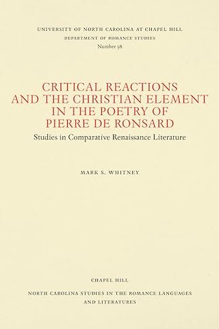 Scholarly opinion on the philosophical and aesthetic significance of Ronsard's Christianity is sharply divided. This monograph makes a thorough review of the most important and representative writings on the question. The foreword by W.L. Wiley describes the broad cultural and literary framework within which Ronsard's Christianity may be examined.