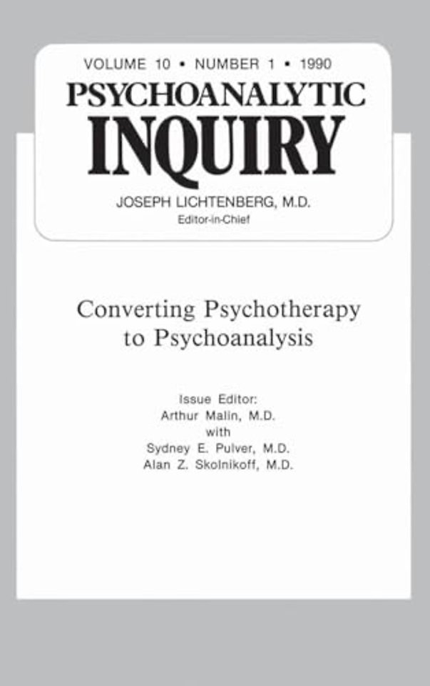 First published in 1990. This is Volume 10, number 1 of Psychoanalytic Inquiry 1990 which looks at the procedure of converting psychotherapy which is seen as relatively commonplace in today's psychoanalytic practice, however there a number of unresolved questions that surround this. This is a collection of papers that deal with some of the clinical and theoretical aspects of the procedure- of shifting a patient from psychotherapy to psychoanalysis.