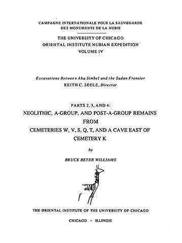 Presents Neolithic, A-Group, and Post-A-Group remains from Qustul, Ballana, and Adindan. Neolithic remains were only found in a cave behind the village of Adindan and consist of sherds, some implements, a human skull, and fragments of decorated ostrich eggshell. The cave is comparable to caves found deep in Sudan.