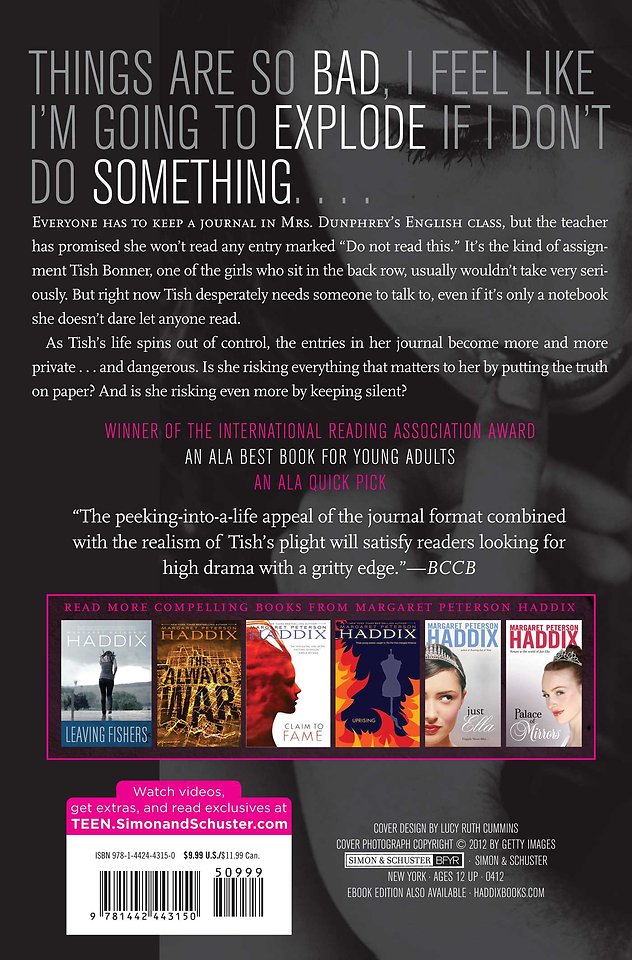 Everyone has to keep a journal in Mrs. Dunphrey’s English class, but the teacher has promised she won’t read any entry marked “Do not read this.” It’s the kind of assignment Tish Bonner, one of the girls with big hair who sit in the back row, usually wouldn’t take very seriously. But right now, Tish desperately needs someone to talk to, even if it’s only a notebook she doesn’t dare let anyone read.