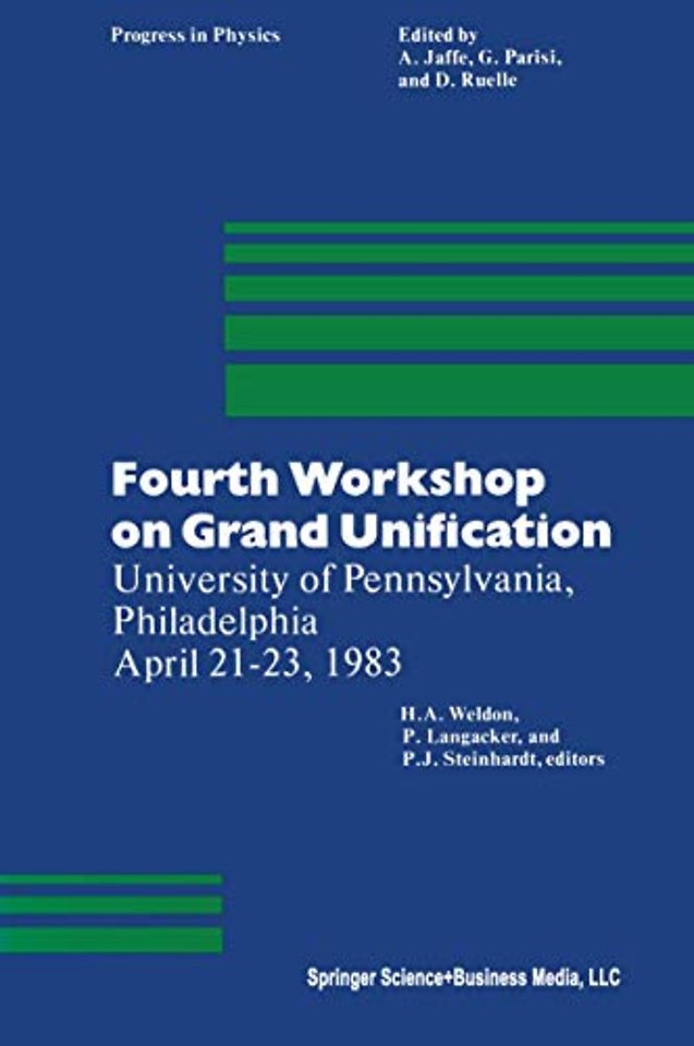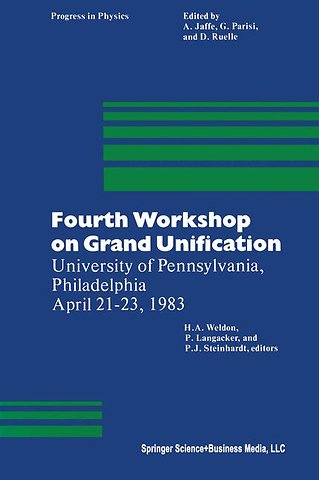 It has been sixteen years since the unification of electro Magnetism with the weak interactions was developed by Glashow, Salam, and Weinberg. Well before that proposal was fully confirmed by experiment, work began on unifying strong interactions with the electroweak. Now there is a growing effort to incorporate some theory of quantum gravity into the scheme. This enormous complex of theoreti cal and experimental efforts was the subject of the Fourth Workshop on Grand Unification held in Philadelphia and attended by over two hundred physicists. During the workshop, experimental and theoretical talks alternated as shown by the program summary on page 409. However, to display the logical scope of the workshop the proceedings are organized into five subject areas. Howard Georgi opened the workshop with a keynote address in which he reminds us of some of the simple properties of the particle spectrum that have not yet been understood. The first subject area, and also the largest, is proton decay and underground physics. This is introduced by ~Jill iam r1arciano' s review of the SU(5) predictions with particular attention paid to the theoretical uncertainties. Spokesmen for the major underground experiments present current results on proton decay, nn oscillations, and magnetic monopole flux: B. V. Sreekantan for the Kolar gold field experiment after 1. 9 years of operation, Earl Peterson for the Soudan detector after 0. 55 years, and Bruce Cortez for the rr'lB detector after 0. 22 years.