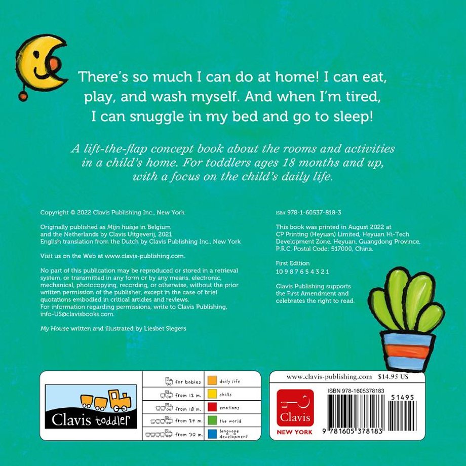 A lift-the-flap concept book about the rooms and activities in a child’s home. For toddlers ages 18 months and up, with a focus on daily life.