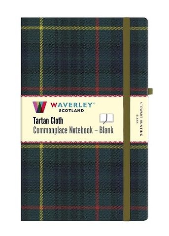 Stewart Hunting Large hardback Notebook with 192 blank pages on 80gsm FSC paper. With pen loop. The colour of the tartan is predominantly green and black, with overchecks of red, yellow and blue. Hunting tartans are more sombre for everyday or hunting wear.
