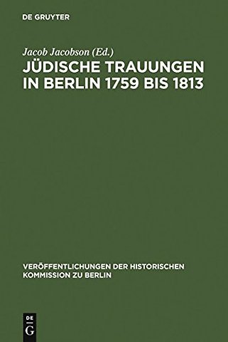 Judische Trauungen in Berlin 1759 bis 1813