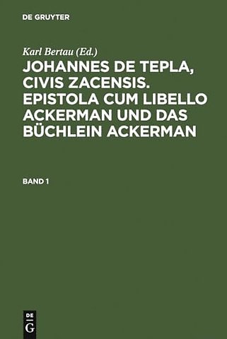 Johannes de Tepla, Civis Zacensis, Epistola cum Libello Ackerman und Das Büchlein Ackerman. Band 1