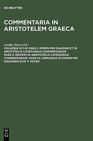 Pars I: Porphyrii Isagoge et in Aristotelis Categorias commentarium. Pars II: Dexippi in Aristotelis Categorias commentarium. Pars III: Amm