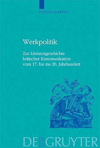 Werkpolitik – Zur Literaturgeschichte kritischer Kommunikation vom 17. bis ins 20. Jahrhundert mit Studien zu Klopstock, Tieck, Goethe und George