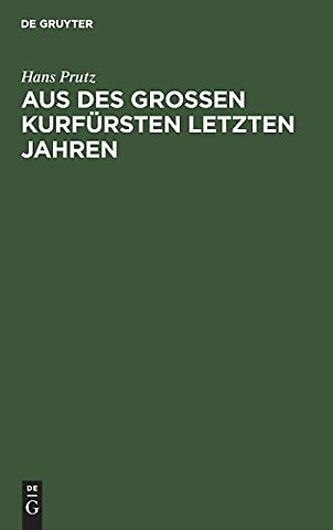 Aus des Groβen Kurfürsten letzten Jahren – Zur Geschichte seines Hauses und Hofes, seiner Regierung und Politik