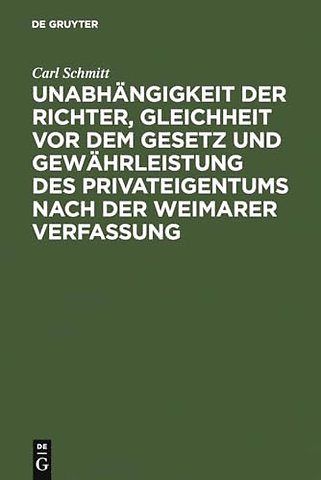 Unabhangigkeit Der Richter, Gleichheit VOR Dem Gesetz Und Gewahrleistung Des Privateigentums Nach Der Weimarer Verfassung