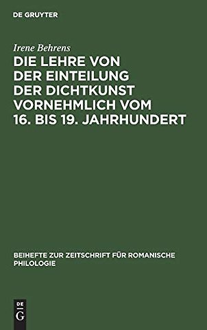 Die Lehre von der Einteilung der Dichtkunst vorn – Studien zur Geschichte der poetischen Gattungen