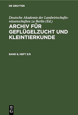 Archiv Fur Geflugelzucht Und Kleintierkunde. Band 8, Heft 5/6
