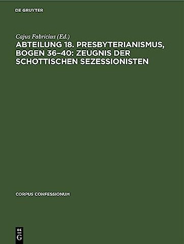 Abteilung 18. Presbyterianismus, Bogen 36–40: Zeugnis der Schottischen Sezessionisten