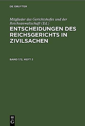 Entscheidungen Des Reichsgerichts in Zivilsachen. Band 172, Heft 2