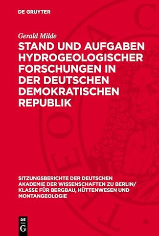 Stand und Aufgaben hydrogeologischer Forschungen in der Deutschen Demokratischen Republik