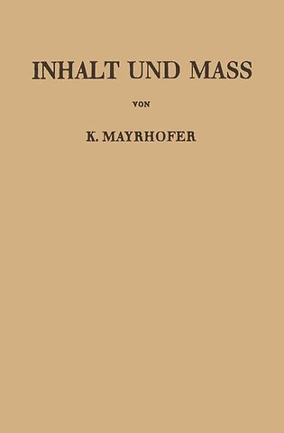 I. Abstrakte Inhalte und Maße..- § 1. Hilfsmittel aus der Mengenlehre.- 1. Summe, Produkt und Differenz von Mengen.- 2. Rechenregeln für Mengen.- 3. Limesmengen von Mengenfolgen.- 4. ?- und ?- Systeme.- 5. Mengenringe.- 6. Mengenkörper.- 7. ?- und ?-Körper.- § 2. Additive Inhalte.- 8. Inhaltsaxiome.- 9. Folgerungen aus den Inhaltsaxiomen.- 10. Äußerer und innerer Inhalt.- 11. Symmetrie- und Summenformeln.- 12. Relativfunktionen.- § 3. Volladditive Inhalte und Maße.- 13. Definition des volladditiven Inhalts.- 14. Grenzwertsätze für volladditive Inhalte.- 15. Summenformeln. Relativfunktionen.- 16. Maßfunktionen.- 17. Grenzwertsätze für Maße.- 18. Inhalte mit besonderen Eigenschaften.- § 4. Maßgleiche Hüllen und Kerne.- 19. Maßgleiche Hüllen.- 20. Maßgleiche Kerne.- 21. Regeln für maßgleiche Hüllen und Kerne.- 22. Grenzwertsätze für äußere und innere Maße.- 23. Vollzerlegbare Mengen.- § 5. Vollständige Inhalte und Maße.- 24. Vollständigkeit eines Inhaltes.- 25. Vollständigkeit eines Maßes.- 26. Kriterien für die Meßbarkeit.- § 6. Vervollständigung eines Inhaltes und eines Maßes.- 27. Kleinste Vervollständigung eines Inhalts.- 28. Kleinste Vervollständigung eines volladditiven Inhalts.- 29. Kleinste Vervollständigung eines Maßes.- § 7. Erweiterung eines volladditiven Inhaltes zu einem Maße.- 30. Die f?-Erweiterung eines volladditiven Inhaltes.- 31. Der ?-Körper N.- 32. Kleinstes vollständiges Maß über einem volladditiven Inhalt.- 33. Kleinstes Maß über einem volladditiven Inhalt.- 34. Darstellung von $$\bar l, \underset{\raise0.3em\hbox{$\smash{\scriptscriptstyle-}$}}{l} $$ und Vergleich mit $$\bar i, \underset{\raise0.3em\hbox{$\smash{\scriptscriptstyle-}$}}{i} $$.- 35. Hüllen und Kerne aus f?? bzw. f??.- § 8. Kriterien für die j-Meßbarkeit.- 36. Hüllen und Kerne aus f? bzw. f?.- 37. j-Meßbarkeit.- § 9. Inhalt und Maß in Produkträumen.- 38. Additive Produktinhalte.- 39. Volladditive Produktinhalte.- 40. Vollständige Inhalte und Maße in Produkträumen.- 41. Mehrfache Produktinhalte.- II. Der Jordan’sche Inhalt..- § 10. Der elementare Inhalt der Würfelaggregate.- 42. Basis und ihre Erweiterung zum Körper.- 43. Elementarer Inhalt der Würfelaggregate.- § 11. Der n-dimensionale Jordan’sche Inhalt.- 44. Erklärung des Jordan’ schen Inhaltes.- 45. Intervalle.- 46. Jordan’scher äußerer und innerer Inhalt.- 47. Darstellungen von $$\bar j$$ und $$\underset{\raise0.3em\hbox{$\smash{\scriptscriptstyle-}$}}{j} $$.- 48. Unabhängigkeit des Inhalts von der Grundfolge.- 49. Kriterien für die Quadrierbarkeit.- 50. Einfachste Inhaltstransformationen.- 51. Jordan’scher Inhalt in Produkträumen.- § 12. Überdeckende Zellensysteme.- 52. Grenzwertsätze für $$\bar j$$ und $$\underset{\raise0.3em\hbox{$\smash{\scriptscriptstyle-}$}}{j} $$.- 53. Überdeckende Zellensysteme.- 54. Weitere Erklärungen des Jordan’schen Inhaltes.- § 13. Inhalt spezieller Gebilde.- 55. Hyperflächen.- 56. Gerade Zylinder.- 57. Kugeln.- 58. Diskontinuen.- 59. Jordan’sche Kurven.- 60. Rektifizierbare Kurven.- III. Das Borel’sche und das Lebesgue’sche Maß..- § 14. Das Borel’sche Maß.- 61. Borel’sche Mengen des En.- 62. Borel’sches Maß.- § 15. Das Lebesgue’sche Maß.- 63. Erklärung des Lebesgue’schen Maßes.- 64. Lebesgue’sches äußeres und inneres Maß.- 65. Darstellungen von $$\bar l$$ und $$\underset{\raise0.3em\hbox{$\smash{\scriptscriptstyle-}$}}{l} $$.- 66. Kriterien für die Meßbarkeit nach Lebesgue.- 67. Zusammenhang von Jordan’schem Inhalt und Lebesgue’schem Maß.- 68. Vollzerlegbarkeit.- 69. Einfachste Maßtransformationen.- 70. Lebesgue’sches Maß in Produkträumen.- 71. Weitere Erklärungen des Lebesgue’schen Maßes.- 72. Gerade Zylinder.- § 16. Nicht nach Lebesgue meßbare Mengen.- 73. Existenz nicht l-meßbarer Mengen.- 74. Nicht l-meßbare Teile n-dimensionaler Punktmengen.- § 17. Der Überdeckungssatz von Vitali.- 75. Vitali-Überdeckungen.- 76. Reguläre Überdeckungen.- § 18. Dichte einer Punktmenge.- 77. Erklärung der Dichte.- 78. Der Dichtesatz.- 79. Reguläre Vergleichssysteme.- 80. Dichte im starken Sinne.- IV. Transformation von Inhalt und Maß..- § 19. Lineare Transformationen.- 81. Zusammensetzung homogener linearer Transformationen aus primitiven.- 82. Orthogonale und kongruente Transformationen.- § 20. Transformation von Inhalt und Maß.- 83. Inhalt und Maß bei einer primitiven Transformation.- 84. Inhalt und Maß bei einer linearen Transformation.- 85. Meßbare Abbildungen.- § 21. Inhalt und Maß elementarer Gebilde.- 86. Zylinder.- 87. Parallelotope.- 88. Kegel.- 89. Simplexe.- 90. Ellipsoide.- V. Theorie der äußeren Maße..- § 22. Äußere und innere Maße.- 91. Allgemeine äußere Maße.- 92. Gewöhnliche äußere Maße.- 93. Innere Maße.- 94. Äußere Maße in metrischen Räumen.- § 23. Die Außenfunktion der f?-Erweiterung eines volladditiven Inhaltes als äußeres Maß.- 95. Das zu einem volladditiven Inhalt gehörige äußere Maß.- 96. Erweiterung eines volladditiven Inhalts zu einem vollständigen Maß.- VI. Verbände und Somenfunktionen..- § 24. Boole’sche Verbände.- 97. Teilweise geordnete Mengen.- 98. Boole’sche Verbände.- 99. Boole’sche ?-Verbände.- 100. Rechenregeln für Somen.- 101. Geschlossene Boole’sche Verbände.- 102. Somenfolgen.- 103. Erweiterung von Boole’schen Verbänden.- 104. Somensysteme.- 105. Boole’sche Algebren.- § 25. Isomorphieen und Homomorphieen.- 106. Isomorphe Boole’sche Verbände.- 107. Homomorphe Boole’sche Verbände.- 108. Konstruktion der Homomorphieen eines Boole’schen Verbandes.- § 26. Somenfunktionen.- 109. Inhalte und Maße als Somenfunktionen.- 110. Inhalts- und Maßreduktion.- 111. Reduktion eines äußeren Maßes.- Anhang. Borel’sche Mengen.- 1. Die Borel’schen Mengen über einem Mengensystem.- 2. Erweiterung eines Mengensystems zum kleinsten ?-Körper.- 3. Die Borel’schen Mengen Euklid’scher Räume.- 4