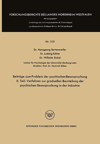 II.Teil: Verfahren zur graduellen Beurteilung der psychischen Beanspruchung in der Industrie