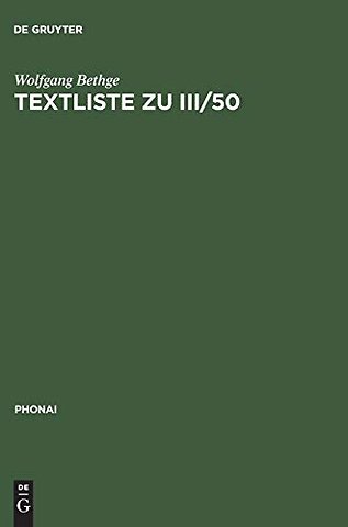 Textliste zu III/50 – Festschrift für Eberhard Zwirner. Teil I