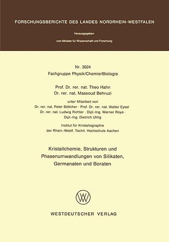 Kristallchemie, Strukturen und Phasenumwandlungen von Silikaten, Germanaten und Boraten