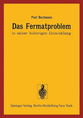 Nr. 1. Fermats Theoreun. Die descente infinie.- „ 2. Beispiel von Fermat; nach Legendres Darstellung.- „ 3. Unmöglichkeit der Gleichungen x4 ± y4 = x2.- „ 4. Folgerungen. Unmöglichkeit der Gleichung x3 + 1 = q2 Die Gleichung x2n + y2n = z2.- „ 5. Reduktion des Fermatschen Theorems auf die Gleichung xp + yp + zp =0. Abelsche Formeln; Fall I und II.- „ 6. Gemeinsame Grundlage der Beweise für p = 3 und p =.- „ 7. Unmöglichkeit der Gleichung x3 + y3 = z3, nach Euler und Legendre.- „ 8. Unmöglichkeit der Gleichung x3 + y3 = 2z3, und Folgerungen.- „ 8a. Die Gleichung x3 + y3 = A·z3, nach Legendre.- „ 9. Unmöglichkeit der Gleichung x5 + y5 = z5, nach Dirichlet. Die Gleichung x5 + y5 = Az3. Die Gleichung x14 + y14 = x14.- „ 10. Neue Grundlage der Untersuchung. Formeln für (x + y + z)p ? xp ? yp ? zp und (x + y)p ? xp ? yp. Bemerkung von Cauchy.- „ 11 und 12. Ein zweiter Ausdruck für (x + y)p ? xp ? yp.- „ 13. Anderer Ausdruck für (x +x + z)p ? xp ? xp ? zp, und Folgerungeu.- „ 14 und 15. Die Ausdrücke y2 + yz + z2, x2 ? yz und ihre analog gebildeten, ihr größter gemeinsamer Teiler.- „ 16. Die We n dt schen Formeln, insbesondere up + u?p + u?p = 2puu?u? · P.- „ 17. Formeln für den Rest von $$ \frac{{{{2}^{p}} - 2}}{p},\frac{{{{3}^{p}} - 3}}{p} $$ (mod. p).- „ 18. Neue Grundlage der Betrachtung. Die Kongruenz xp + yp + zp = 0 (mod. p), und Folgerungen.- „ 19. Bedingungen für die Lösbarkeit der Gleichung xp + yp + zp = 0 im Falle I.- „ 20. Die Kongruenz xp + yp + zp = 0 (mod. ? = 2 hp + 1). Legendr es Bedingung für die Lösbarkeit der Gleichung xp + yp+ zp = 0 im Falle I. Andere Formulierung durch Wendt.- „ 21. Bedingung für die Lösbarkeit der Gleichung im Falle II, nach Wendt.- Nr. 22. Sätze von Legendre über ihre Unmöglichkeit im Falle I.- „ 23 und 24. Dickson s bezügliche Untersuchungen.- „ 25 und 26. Dicksons Beweis, daß die Anzahl der Primzahlen ? = 2 hp + 1, für welche xp + xp + zp = 0 (mod. ?) in Zahlen, prim zu ?, unmöglich ist, nur endlich ist.- „ 27. Beweis von J. Schur, Hilfssatz aus der Kombinationslehre.- „ 28–31. Hurwitz’ bezügliche Untersuchung der allgemeineren Kongruenz a xp + b yp + c zp = 0 (mod. ?).- „ 32. Kummer s neue Behandlung und Verallgemeinerung des Fermatproblems.- „ 33. Grundbetrachtungen über Zahlenkörper und ihre Ideale.- „ 34. Gauss’ Beweis für die Unmöglichkeit von x3 + y3 + z3 = 0.- „ 35. Hilfsbetrachtungen aus der Theorie des Kreisteilungskörpers.- „ 36 und 37. Kummers Beweis des verallgemeinerten Fermatschen Theorems für reguläre Primzahlexponenten.- „ 38 und 39. Herleitung der Kummerschen Kongruenzbedingungen für die Fermatsche Gleichung im Falle I.- „ 40 und 41. Die Funktionen Pi(x,y) oder Pi(t). Sätze von Mirimanoff und Kummer.- „ 42. Mirimanoffs Funktionen ?i (t) ?i(t).- „ 43. Seine Umformung der Kummer sehen Kongruenzbedingungen.- „ 44. Das Wieferichsche Kriterium $$ \frac{{{{2}^{p}} - 2}}{p} \equiv 0 $$ (mod. p); bezügliche Bemerkungen von Mirimanoff und Frobenius.- „ 45. Ein Satz über die Wurzeln von ?p?1 (t) = 0.- „ 46. Mirimanoffs Verallgemeinerung der Untersuchungen von Wieferich, und sein Kriterium $$ \frac{{{{3}^{p}} - 3}}{p} \equiv 0 $$ (mod.p).- „ 47 und 48. Vereinfachung und Fortsetzung der Untersuchungen von Mirimanoff durch Frobenius. Weitere Kriterien von Frobenius und Vandiver.- „ 49. Neue Begründung solcher Kriterien durch Furtwängler.- „ 50. Furtwänglers neue Formulierung der Kummerschen Kongruenzbedingungen. Untersuchungen von Bernstein und von Hecke.- „ 51. Maillets Verallgemeinerungen des Fermatproblems, Studien über die Gleichung xp + yp = C · zp.- „ 52. Rückblick und Ausschau. Fueters Probleinstellung 158 Bemerkung zu Nr. 8 a.