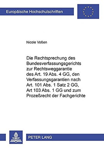 Die Rechtsprechung Des Bundesverfassungsgerichts Zur Rechtsweggarantie Des Art. 19 Abs. 4 Gg, Den Verfahrensgarantien Nach Art. 101 Abs. 1 Satz 2 Gg, Art. 103 Abs. 1 Gg Und Zum Prozeßrecht Der Fachgerichte