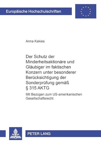 Der Schutz Der Minderheitsaktionaere Und Glaeubiger Im Faktischen Konzern Unter Besonderer Beruecksichtigung Der Sonderpruefung Gemaeß § 315 Aktg