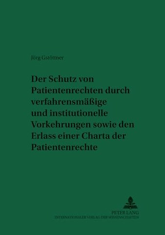 Der Schutz Von Patientenrechten Durch Verfahrensmaeßige Und Institutionelle Vorkehrungen Sowie Den Erlass Einer Charta Der Patientenrechte