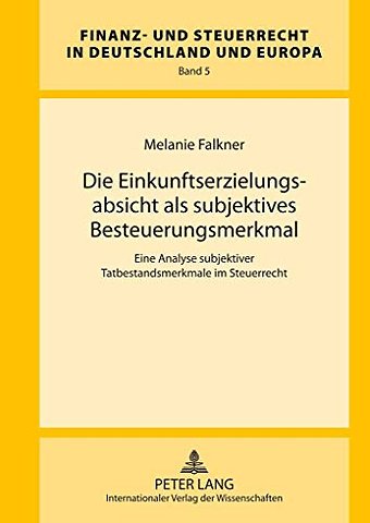 Eine Analyse Subjektiver Tatbestandsmerkmale Im Steuerrecht- Zugleich Ein Beitrag Zur Liebhaberei Im Steuerrecht