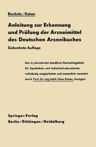 Allgemeine Bestimmungen.- Allgemeine Richtlinien für die Schreibweise der Formeln.- Allgemeine fachtechnische Erläuterungen.- Untersuchungsverfahren.- Alkoholbestimmung in Tinkturen, Fluidextrakten, weingeistigen Destillaten usw., auch kosmetischen Präparaten.- Bemerkungen zu allgemeinen Prüfungsmethoden des Arzneibuches.- Die Bestimmung des Schmelzpunktes.- Die Bestimmung des Erstarrungspunktes.- Zur Bestimmung des Siedepunktes.- Bestimmung der Destillationstemperatur.- Destillation mit Wasserdampf.- Das optische Drehungsvermögen und eine Bestimmung.- Bestimmung des Drehungswinkels einer aktiven Flüssigkeit.- Spezifische Drehung aktiver Substanzen.- Verwendung der Konstante des spezifischen Drehungsvermögens zur Gehaltsbestimmung einer Lösung.- Beeinflussungen des spezifischen Drehungsvermögens.- Fette und Öle.- Bestimmung von Säuregrad, Säurezahl, Verseifungszahl, Esterzahl.- Bestimmung der unverseifbaren Anteile.- Jodzahl der Fette und Öle.- Elaidinprobe.- Die ätherischen Öle.- Prüfung auf fette Öle.- Löslichkeit der ätherischen Öle in Alkohol.- Prüfung auf Phthalsäureester und andere fremde Ester.- Prüfung auf organische Halogenverbindungen.- Prüfung auf Blei und Kupfer.- Prüfung auf Weingeist.- Azetylierung.- Kassiakölbchen.- Alkaloidbestimmungen.- Morphinbestimmung in Opium, Opiumextrakt und Opiumtinkturen.- Silberbestimmungen.- Quecksilberbestimmungen.- Bestimmung des Gehalts an Chloriden in Bromiden.- Eisenbestimmungen.- Arsen- und Antimonbestimmungen.- Maßanalyse.- Maßsystem.- Meßgefäße.- Volumetrische Lösungen.- Indikatoren.- Bereitung und Einstellung der volumetrischen Lösungen.- Bemerkungen zum Verzeichnis der Reagenzien, die zur Prüfung der Arzneimittel erforderlich sind.- Die einzelnen Artikel in der alphabetischen Reihenfolge der lateinischen Namen.- Verzeichnis der Atomgewichte.- Verzeichnis der Reagenzien.- Verzeichnis der volumetrischen Lösungen und Indikatoren.- Übersicht über die zwischen 10° und 25° eintretenden Veränderungen der Dichten.- Übersicht über die Dichten bei 15°.- Übersicht über die Veränderungen des Siedepunkts einiger Arzneimittel bei Änderungen des Luftdrucks zwischen 800 und 650 mm.- Die Aufbewahrung der Arzneimittel.- Zusammenstellung der für das Apothekenlaboratorium erforderlichen Geräte.