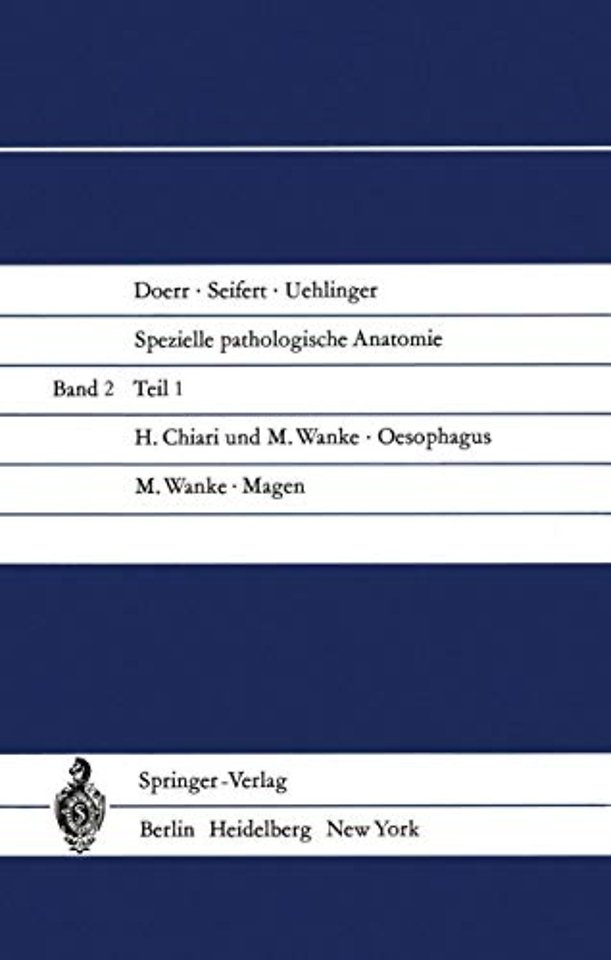 Oesophagus.- A. Entwicklung, normale Anatomie, Histologie und Physiologie.- B. Fehlbildungen.- C. Leichenerscheinungen an Oesophagus, Magen und Darm.- D. Degeneration.- E. Hypertrophie und Atrophie.- F. Veränderungen der Lage und Lichtung des Oesophagus.- G. Zirkulationsstörungen.- H. Entzündungen.- J. Ruptur, Fremdkörper und Perforationen des Oesophagus.- K. Veränderungen des Oesophagus und Magens bei Verätzungen und Vergiftungen.- L. Tumoren des Oesophagus.- M. Literatur.- Magen.- A. Entwicklung, Topographie, normale Anatomie und Histologie.- B. Physiologie.- C. Fehlbildungen.- D. Degeneration.- E. Akute Dilatation, Ruptur, Fremdkörper.- F. Entzündungen.- G. Zirkulationsstörungen und Hämorrhagien.- H. Das Magen- und Duodenalulcus.- J. Pylorusstenose des Erwachsenen, Invaginationen im Bereiche des Magens sowie des angrenzenden Oesophagus und Duodenum, erworbene Magen-divertikel.- K. Benigne Magentumoren.- L. Bösartige Magentumoren.- M. Exfoliativcytologie des Magens.- N. Der operierte Magen.- O. Literatur.