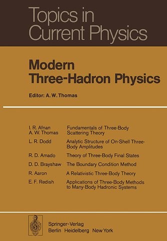 1. Fundamentals of Three-Body Scattering Theory.- 1.1 Two-Body Scattering.- 1.2 The Simplest Three-Body Problem.- 1.3 Three Distinguishable Particles — Wave Function Approach.- 1.4 The Faddeev Equations (3?3).- 1.5 Bound State Scattering.- 1.6 Unitarity.- 1.7 Identical Particles.- 1.8 Three-Body Scattering With Separable Interactions.- 1.9 Rotationally Invariant Equations for Separable Interactions.- 1.10 Conclusion.- References.- 2. Analytic Structure of On-Shell Three-Body Amplitudes.- 2.1 Background.- 2.2 The Fredholm Representation of On-Shell Amplitudes.- 2.3 Analytic Continuation in Energy of the On-Shell Amplitudes.- 2.4 On-Shell Calculations.- 2.5 Conclusions.- Appendi x.- References.- 3. Theory of Three-Body Final States.- 3.1 The Problem.- 3.2 Coherence.- 3.3 The Two-Body Case.- 3.4 The Three-Body Case.- 3.5 Spinless Boson Example.- 3.6 Implementing Unitarity and Analyticity.- 3.7 Three Identical Bosons Again.- 3.8 Conclusions.- References.- 4. The Boundary Condition Method.- 4.1 Fundamentals.- 4.2 Two-Particle Description.- 4.3 Boundary Conditions for Three-Particle Scattering.- 4.4 The BCF Integral Equation.- 4.5 Practical Evaluation of the Kernel.- 4.6 The Interior Region.- 4.7 Summary of the Formal Work.- 4.8 An Example.- 4.9 Discussion.- References.- 5. A Relativistic Three-Body Theory.- 5.1 Derivation of the Basic Equations — Spinless Case.- 5.2 Spin and Isospin.- 5.3 Physical Input: Blankenbecler-Sugar vs. Feynman, etc.- 5.4 Application of Relativistic Three-Body Formalism.- 5.5 Present Developments — Three-Body Phenomenology.- Appendix A.- Appendix B.- References.- 6. Applications of Three-Body Methods to Many-Body Hadronic Systems.- 6.1 Tests of Reaction Mechanisms.- 6.2 Three-Body Effects in Nuclear Processes.- References.