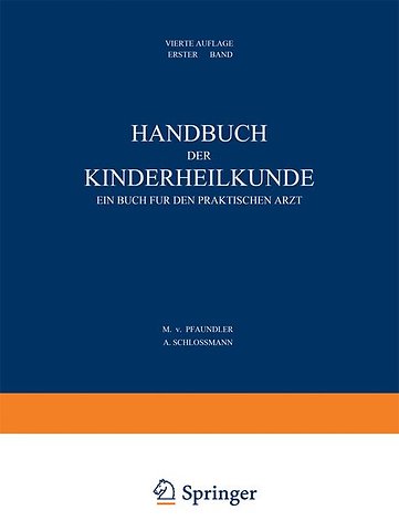 Allgemeiner Teil.- Geschichte der Kinderheilkunde.- Biologisches und allgemein Pathologisches über die frühen Entwicklungsstufen.- Morbidität und Mortalität im Kindesalter.- Untersuchung des kranken Kindes.- Allgemeine Prophylaxe und Therapie der Kinderkrankheiten.- Gesundheitsfürsorge für das Kindesalter.- Pharmakotherapie im Kindesalter.- Physiologie von Ernährung, Verdauung, Stoffwechsel und Wachstum.- Milch.- Weibliche Brust.- Wachstum, Aufbau, Stoffwechsel und Ernährung des gesunden Säuglings.- Stoffwechsel und Ernährung älterer Kinder.- Spezielle Pathologie bestimmter Altersstufen.- Pathologie der Neugeburtsperiode.- Pathologie der Frühgeborenen einschließlich der „debilen“ und „lebensschwachen“ Kinder.- Physiologie und Pathologie der Pubertät.- Pathologie der Konstitution.- Konstitution und Konstitutionsanomalien. Allgemeines, Begriff, Wesen, Grundlagen.- E xsudative Diathese, Lymphatismus, Status thymico-lymphaticus, Arthritismus.- Multiple Abartungen.- Diabetes mellitus.- Fettsucht und Magersucht.- Mangelkrankheiten.- Rachitis und Tetanie.- Skorbut im Säuglingsalter (Möller-Barlowsche Krankheit) und im Kindesalter.- Erkrankungen des Blutes und der blutbildenden Organe.- Pathologie der endokrinen Organe.- Allgemeines über die Pathologie der endokrinen Organe.- Pathologie der Nebenniere.- Pathologie der Schilddrüse.- Pathologie der Thymusdrüse.- Pathologie der Hypophyse.
