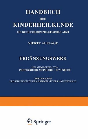 Ergänzungen zu Band.- Pharmakologie im Kindesalter.- Ernährung des älteren Kindes.- Pathologie der Neugeburtsperiode.- Pathologie der frühgeborenen einschließlich der „debilen“ und „lebensschwachen“ Kinder.- Exsudative Diathese.- Multiple Abartungen.- Diabetes mellitus.- Rachitis und Tetanie.- Erkrankungen des Blutes und der blutbildenden Organe.- Pathologie der Nebenniere.- Allgemeines über die Pathologie der endokrinen Organe.- Pathologie der Schilddrüse.- Krankheiten der Hypophyse.- Ergänzungen zu Band.- Diphtherie.- Scharlach.- Varicellen.- Keuchhusten.- Die rheumatische Infektion.- Die Feersche Krankheit (Kindliche Akrodynie. Vegetative Neuropathie des Kleinkindes).- Die Poliomyelitis (Übertragbare Kinderlähmung, Heine-Medinsche Krankheit.).- Die Pocken und die Schutzpockenimpfung.- Kurze Darstellung der wichtigsten tropischen Erkrankungen im Kindesalter.- Ergänzungen zu Band.- Die hypertrophische Pylorusstenose des Säuglings.- Die Erkrankungen der Leber.- Die Respirationserkrankungen.- Die Erkrankungen des Herzens, der Blut- und Lymphgefäße.- Die Elektrokardiographie in der Kinderheilkunde.- Ergänzungen zu Band.- Erkrankungen der Harnorgane. Erster Teil.- Organische Nervenkrankheiten.