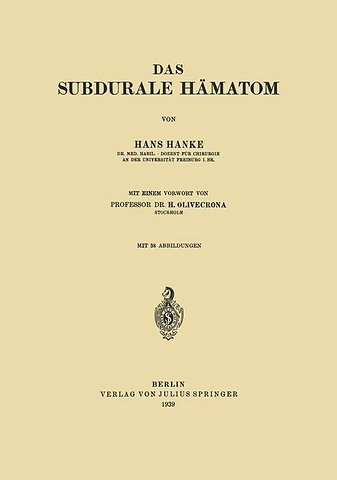 I. Einleitung und Begriffsbestimmung.- II. Zur normalen Anatomie der Dura mater.- III. Zur Physiologie der Dura mater.- IV. Geschichtliche Entwicklung der Lehre vom subduralen Hämatom und der Pachymeningitis haemorrhagica interna.- V. Bericht über 32 operierte Fälle von subduralem Hämatom aus der Neurochirurgischen Klinik des Serafimerlasarettet in Stockholm und 2 weitere Beobachtungen.- VI. Häufigkeit, Geschlechts- und Altersverteilung des subduralen Hämatoms.- VII. Die Pathologie und formale Entstehung des traumatischen subduralen Hämatoms.- 1. Das traumatische chronische Subduralhämatom.- a) Makroskopisches Bild des typischen, die Großhirnhemisphäre bedeckenden Hämatoms.- b) Umschriebene Hämatome außerhalb der Konvexität der Großhirnhemisphären.- c) Histologisches Bild des traumatisch bedingten chronischen Subduralhämatoms.- d) Ursprung und formale Genese des traumatischen chronischen Hämatoms.- 2. Die akuten und subakuten traumatischen Subduralblutungen.- 3. Regressive Veränderungen in Hämatomen und sonstige Befunde.- VIII. Die Ätiologie subduraler Blutungen und ihre Beziehungen zur sog. Pachymeningitis haemorrhagica interna.- 1. Traumatische Subduralblutungen.- 2. Nicht notwendig traumatisch bedingte Subduralblutungen.- a) Subdurale Blutungen auf der Grundlage abnormer Gefäßverbindungen zwischen Dura und Pia bzw. Hirnrinde und von Gefäßmißbildungen der Dura.- b) Subdurale Blutungen bei hämorrhagischen Diathesen (Thrombopenie, Hämophilie, perniziöser Anämie und anderen Erkrankungen mit hämorrhagischer Diathese).- c) Subdurale Blutungen bei exogenen und endogenen Toxikosen.- d) Subdurale Blutungen bei Erkrankungen der Kreislauforgane.- e) Subdurale Blutungen bei Vitaminmangel.- f) Subdurale Blutungen infolge Insolation.- g) Subdurale Blutungen bei Tumormetastasen der Dura.- 3. Entzündlich bedingte Subduralblutungen („Pachymeningitis haemorrhagica interna“).- a) Subdurale Blutungen („Pachymeningitis haemorrhagica interna“) bei Infektionen der Nachbarschaft (Gehirn, Ohren, Nase und Nebenhöhlen).- b) Subdurale Blutungen („Pachymeningitis haemorrhagica interna“) bei Infektionskrankheiten.- c) Subdurale Blutungen bei Tuberkulose („Pachymeningitis haemorrhagica interna tuberculosa“).- d) Subdurale Blutungen bei Lues („Pachymeningitis haemorrhagica interna syphilitica“).- IX. Die experimentelle Erzeugung subduraler Blutungen.- X. Die Symptomatologie des subduralen Hämatoms.- a) Das posttraumatische freie Intervall beim chronischen Hämatom.- b) Entwicklung des klinischen Bildes und die Ursachen seiner Variabilität.- c) Einzelsymptome und Befunde.- d) Besondere Formen (nichttraumatische Blutungen, „Formes frustes“, akute Blutungen, subdurales Hygrom).- XI. Die Diagnostik und Differentialdiagnose des subduralen Hämatoms.- a) Klinische Diagnostik und Differentialdiagnose.- 1. Chronisches Hämatom.- 2. Akute Blutung.- 3. Wert der Liquoruntersuchung.- b) Röntgenologische Diagnostik.- 1. Schädelröntgenologie.- 2. Encephalographie und Ventrikulographie.- 3. Arteriographie.- c) Probebohrung.- d) Untersuchungsgang.- XII. Das subdurale Hämatom im Kindesalter.- 1. Häufigkeit des subduralen Hämatoms im Kindesalter.- 2. Pathologie des kindlichen Subduralhämatoms.- 3. Ätiologie des kindlichen Subduralhämatoms.- a) Traumatische Blutungen.- 1. Blutungen infolge eines von außen kommenden Traumas.- 2. Geburtshämatome.- b) Nicht notwendig traumatisch bedingte Blutungen.- c) Entzündlich bedingte Blutungen („Pachymeningitis haemorrhagica interna“).- 4. Symptomatologie und Diagnostik des kindlichen Subduralhämatoms.- a) Bei älteren Kindern.- b) Bei Neugeborenen.- c) Im Säuglingsalter.- 5. Behandlung des kindlichen Subduralhämatoms.- XIII. Die Behandlung des subduralen Hämatoms.- 1. Die operativen Methoden.- a) Die einfache oder mit Spülung oder Drainage kombinierte Entleerung durch Bohrlöcher.- b) Die osteoplastische Methode.- c) Die kombinierte Methode (Dekompression).- 2. Postoperative Komplikationen und Behandlung.- a) Hirnschrumpfung und Ödem.- b) Postoperative Hämatome, insbesondere das extradurale Hämatom.- 3. Postoperative Mortalität.- XIV. Endergebnisse der Behandlung und Schluß.- Literatur.