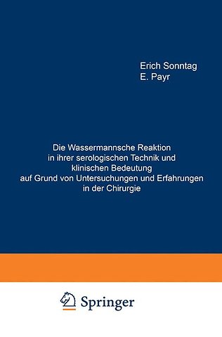 Einleitung: Geschichte und Bedeutung der W. R.- Wesen der Reaktion.- I. Serologischer Teil (Methodik).- A. Die einzelnen bei dem Versuch zur Anwendung kommenden Re-agenzien:.- 1. Antigen:.- a) Die verschiedenen Arten von Antigenen (Wasser-, Alkohol-, Azeton-, Äther- und andere Antigene).- b) Dosierung, bzw. Einstellung der Antigene.- 2. Reaktionskörper:.- a) Blutserum (Beschaffung, Verarbeitung, Berumgewinnung, Inaktivierung nebst Bemerkungen über aktive und eigenhemmende Sera, Anwendung).- b) Punktionsflüssigkeiten.- c) Milch.- d) Zerebrospinalflüssigkeit.- 3. Erythrozyten (Blutgewinnung, Verarbeitung, Aufbewahrung, Anwendung).- 4. Ambozeptor (Herstellung und Verwendung).- 5. Komplement (Gewinnimg, Verarbeitung, Aufbewahrung, Ver-wendung).- Zusatz: Hämolyse, bzw. deren Hemmung.- B. Versuchsanordnung:.- I. Vorbemerkungen:.- 1. Quantitative Bestimmung.- 2. Bestrebungen zur Verfeinerung.- 3. Paradoxe Reaktion.- 4. Modifikationen, speziell Mikroreaktion und v. Dungernsche Methode.- II. Spezielle Versuchsanordnung und Ausführung:.- 1. Versuchsanordnung: Vorversuche mit Titrierung von Ambozeptor und Komplement und Hauptversuch mit Kontrollen.- 2. Spezielle Versuchstechnik mit Rechnungsschema.- C. Beurteilung des Versuchsergebnisses nebst Bemerkungen über inkom-plette Hemmung und Teilreaktion.- II. Klinischer Teil.- A. Spezifität der Reaktion (unspezifische Ausschläge bei anderen Krankheiten und Krankheiten, welche die positive Reaktion hindern können, auch Bemerkungen über Tumor- und Narkosesera).- B. Konstanz der Reaktion:.- 1. Tabelle der eigenen Erfahrungen.- 2. Das Versuchsergebnis bei den einzelnen Krankheitsstadien und Formen (Lues I, II, III, Latenz, Tabes und Paralyse, L. hereditaria).- 3. Einfluß spezifischer Behandlung auf das Reaktionsergebnis.- 4. Verwertbarkeit und Bedeutung der Reaktion für die Klinik:.- a) Für die Diagnose auf verschiedenem, speziell auf chirurgischem Gebiet.- b) Für die Prognose und Therapie einschließlich besonderer praktischer Zwecke.- Zusammenfassung.- Anhang 1: Untersuchungsformular.- 2: Instrumentarium.- Literatur.
