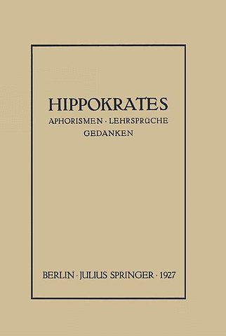 Der Eid.- Das Gesetz.- Vom ärztlichen Anstand.- Vom Arzte.- Vorschriften.- Die Werkstätte des Arztes.- Von der alten Medizin.- Von der ärztlichen Kunst.- Aphorismen.- Das Buch der Prognosen.- Vorhersagen II.- Von der Siebenzahl.- Von kritischen Tagen.- Von den Geweben.- Von den Säften.- Von der Diät.- Von den Träumen.- Von der Gesundheitspflege.- Von den Krankheiten der Jungfrauen.- Vom Zahnen der Säuglinge.- Von den Leiden.- Von den epidemischen Krankheiten.- Von den Winden.- Von Luft, Wasser und Örtlichkeit.- Vom Gebrauche der Flüssigkeiten.- Von der Natur des Menschen.- Vom Samen.- Von der Nahrung.- Aus dem apokryphen Briefe an die Abderiten.- Nachwort.